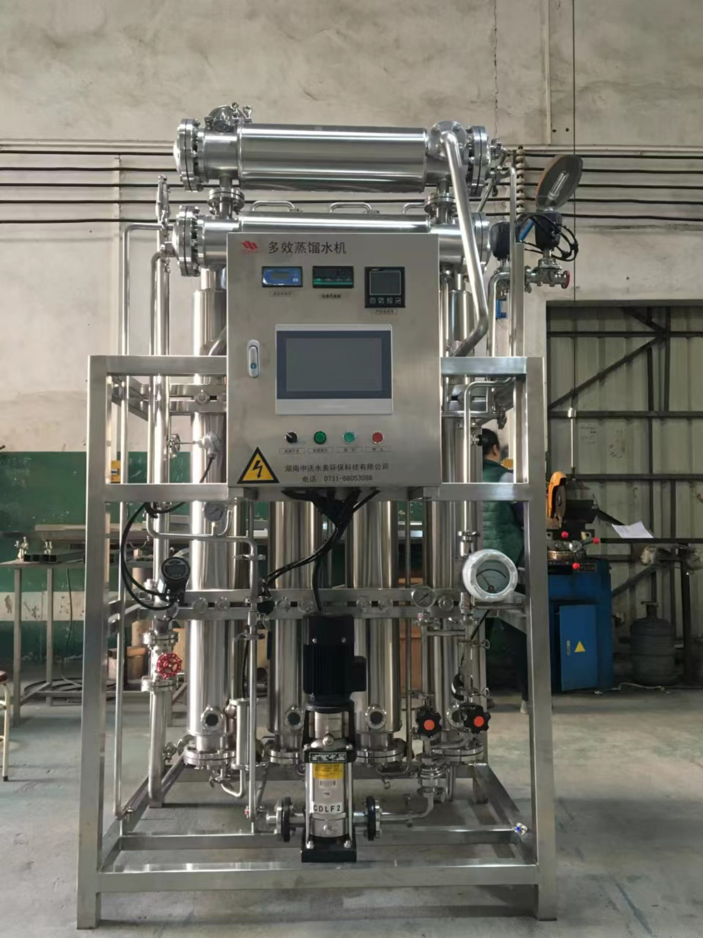 整機由蒸發(fā)器、預(yù)熱器、冷凝器、水泵、管道、電器、檢測部分組成。具有設(shè)計獨特、制造精良、結(jié)構(gòu)緊湊合理、運作安全可靠、安裝維修、操作簡便易學(xué)、保養(yǎng)方便等特點。蒸發(fā)器采用列管式,降膜法原理,設(shè)計先進的料水分布器,使料水均勻地布膜流動,消除了局部料水不均造成的干壁現(xiàn)象。大大提高該設(shè)備的換熱效果,具有出水量大等優(yōu)點。本機生產(chǎn)的蒸餾水,純度高、無熱原完全符合《中國藥典》(2020年版)中“注射用水”的各項質(zhì)量指標規(guī)定。