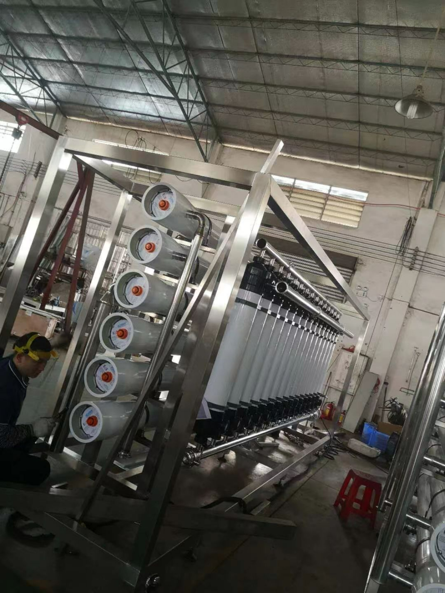 超濾的作用非常廣泛,可以去除懸浮物、膠體、色度、濁度、有機物、細菌等雜質(zhì)+RO反滲透設(shè)備是采用膜分離手段來去除水中的離子,有機物,膠體微粒、細菌等雜質(zhì),使水達到脫鹽純化的目的。
